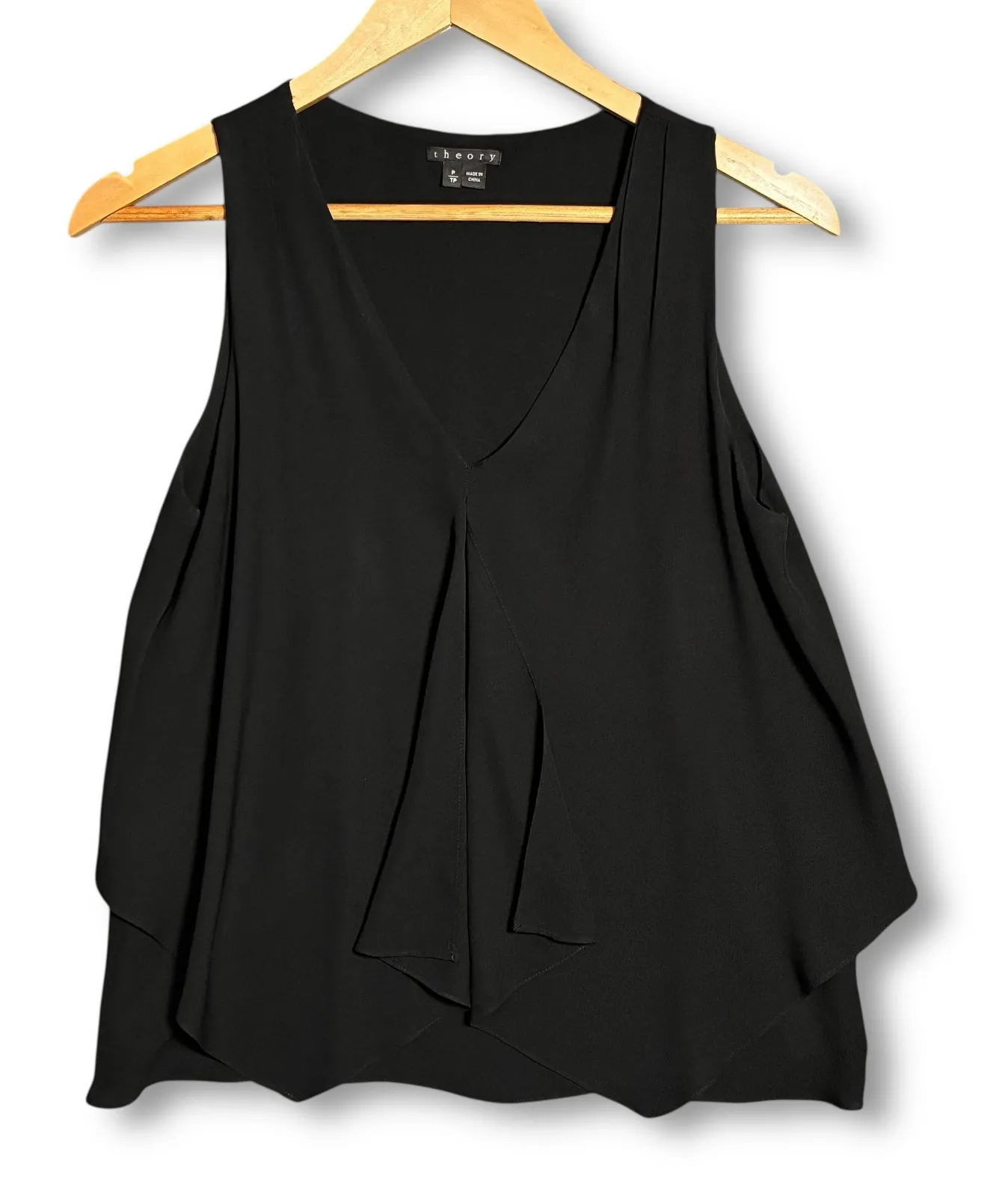 Good preowned condition, no rips or stains. 100% Silk Theory black sleeveless V-neck tank top. Thi... Show more