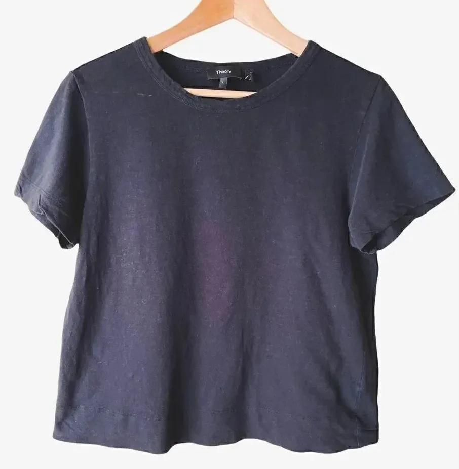 Theory Black Womens Cropped Crewneck Short Sleeves T-Shirt Size: L Measurements are approximate la... Show more