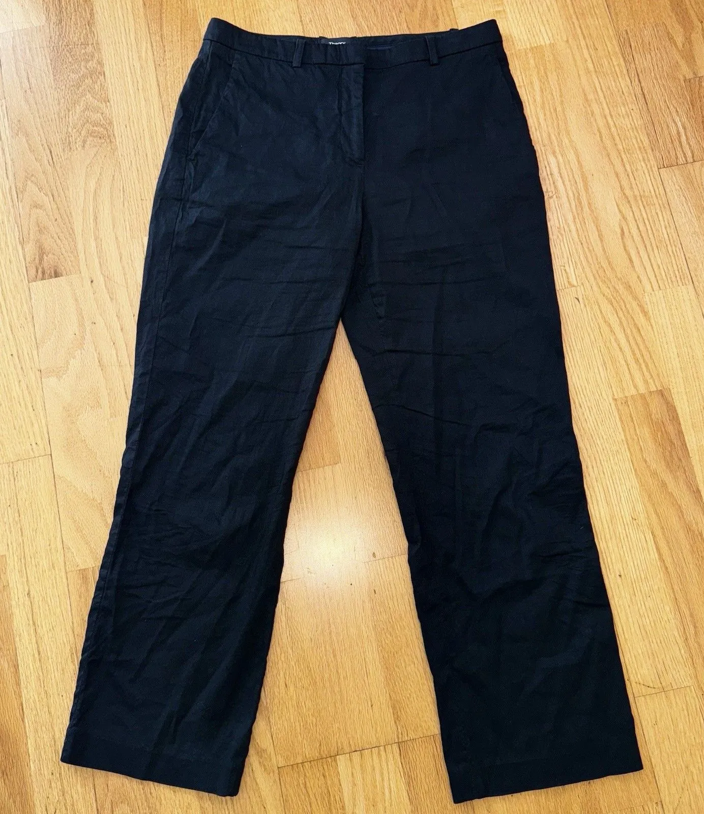 Theory Hartsdale NP Crunch Wash Women's Linen Blend Straight Leg Ankle Pants. Color Black. Size 4. E... Show more