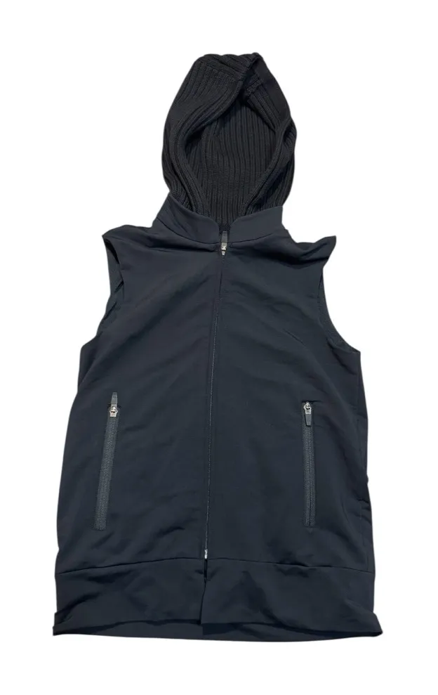 softshell vest in classic black. Features a sleek zip-front design, ribbed knit hood, and two zip po... Show more