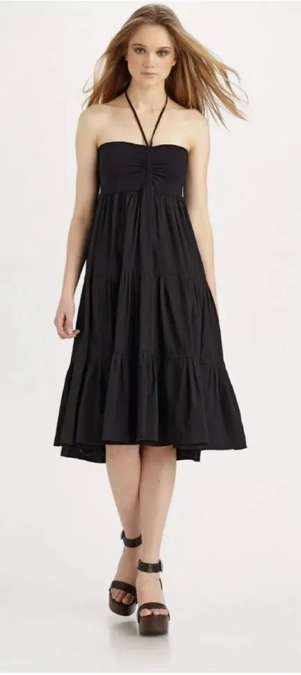 Theory Melcia black linen halter tiered cover up dress One Size Fits Most
