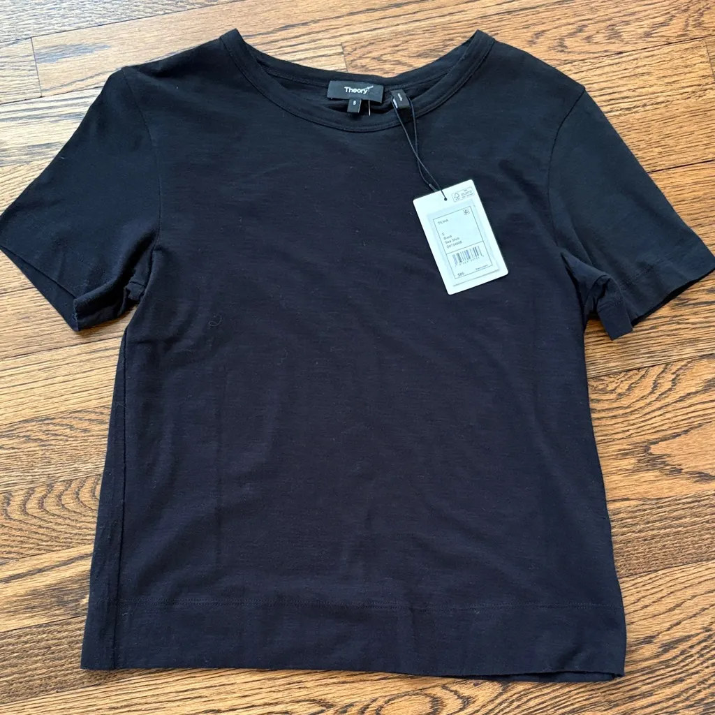 Sleek and stylish black top by Theory. Ideal for casual or formal wear. Soft fabric with a comfortab... Show more