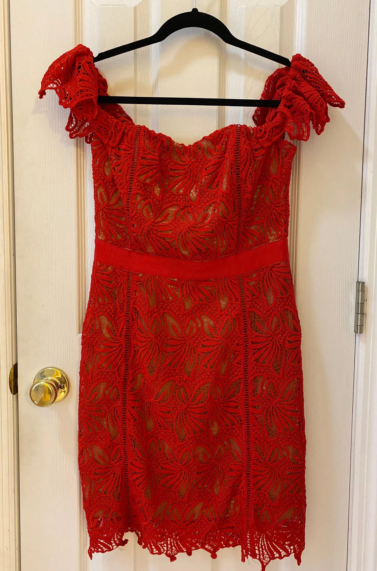 Red lace off the shoulder dress! Beautiful cocktail dress - worn once for the Kentucky Derby