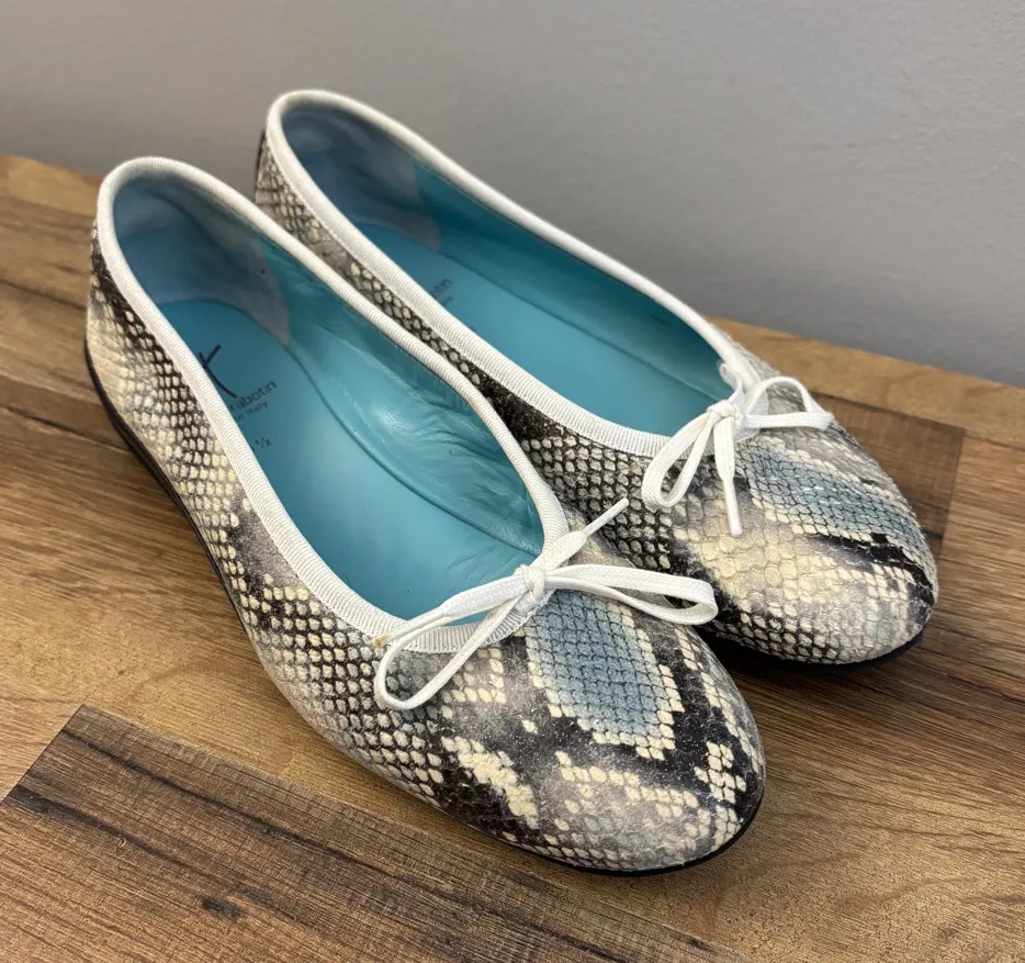 Thierry Rabotin Gem Snake Print Leather Ballet Flats Shoes Made in Italy Blue Size 6 - $35 - From Jill