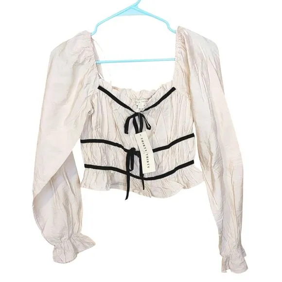 Thirty Thirty LA Size Small S White Black Bow Long Sleeve Crop Top Blouse NEW - $33 New With Tags - From Liberty