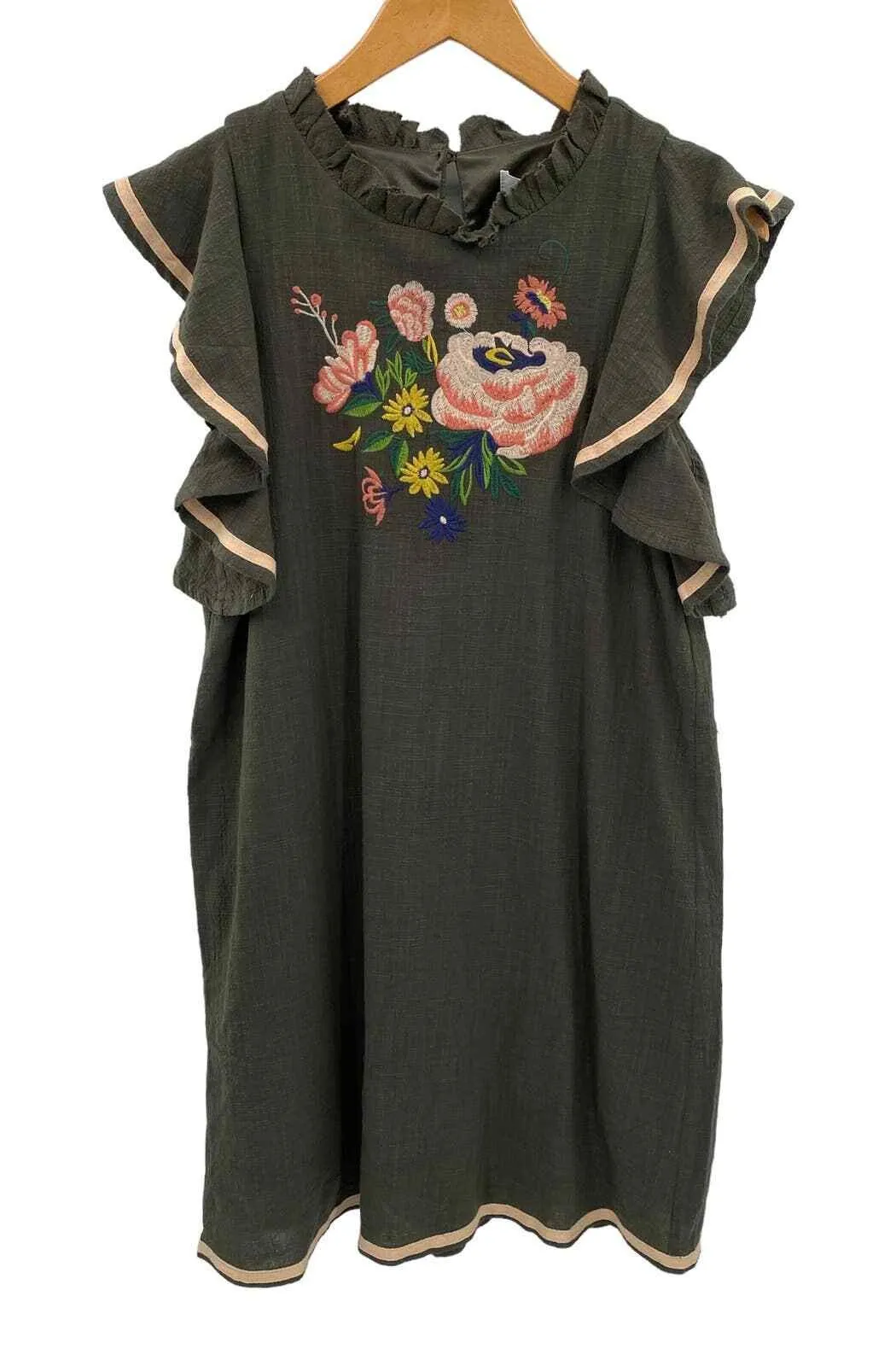THML Tunic Shift Dress womens small Olive Green Embroidered Flutter Ruffle sleeve Cotton NEW with tags Approximate Measurements Laying Flat Across: Chest: 17 inches Length: 34 inches Seller Notes: -Same/Next Day Shipping -Smoke Free & Pet Friendly Home