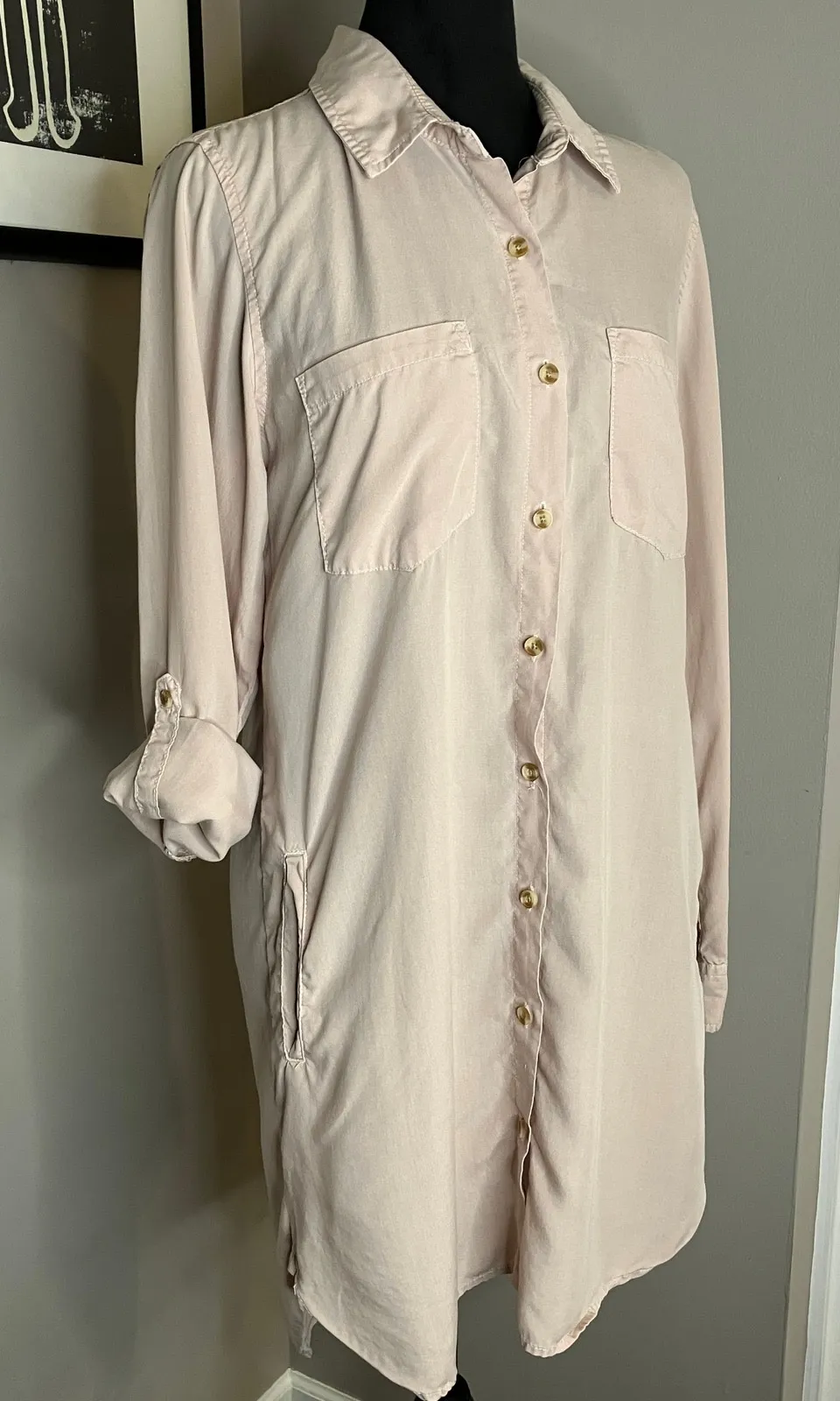Thread & Supply Long Sleeve Lyocell Button Front Shirt Dress Beige Sm 100% Lyocell Collared Button... Show more