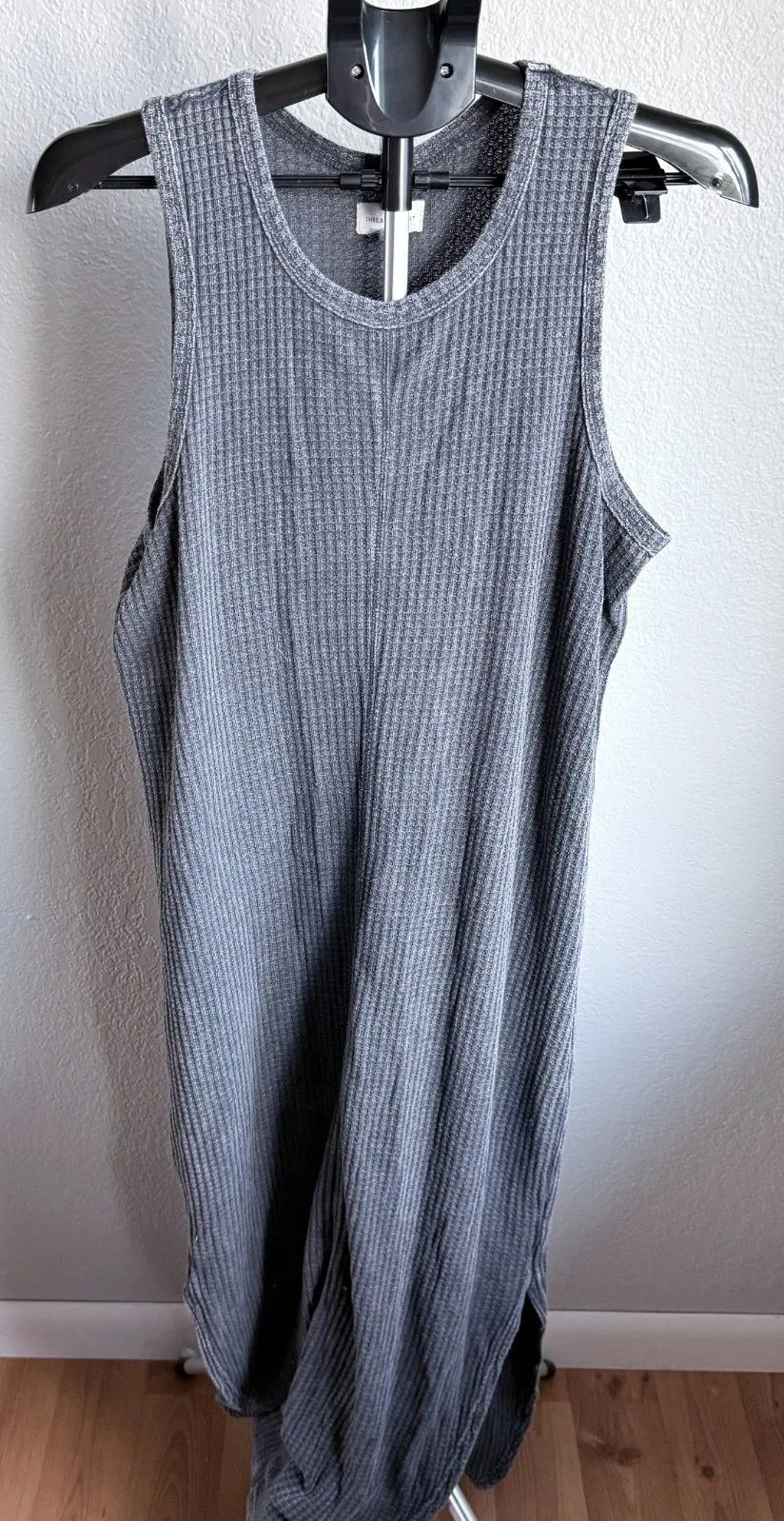 Thread & Supply Waffle Knit Ribbed Body Con Sleeveless Maxi Dress Women's L. The care tag has been removed as pictured. Lenght: 52" Pit to pit taken flat: 18" western, cowgirl, cowboy, maxi, loungewear, easy care, modest fashion, punk, goth, charcoal