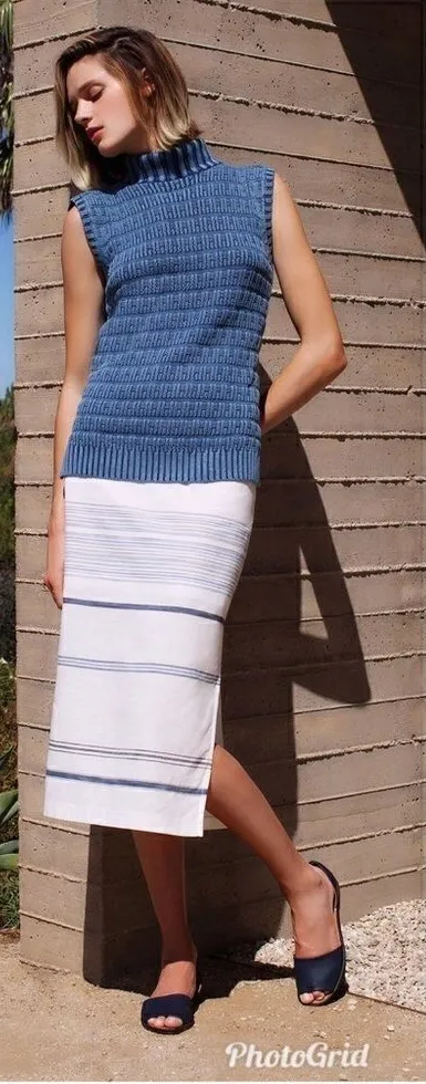 Three Dots blue stripe pencil skirt. NWOT White - $25 - From cindy
