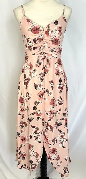 Three Pink‎ Hearts Dress Womens XS Floral Print Maxi Pink High Low Hem Ruched - $25 - From Sheila