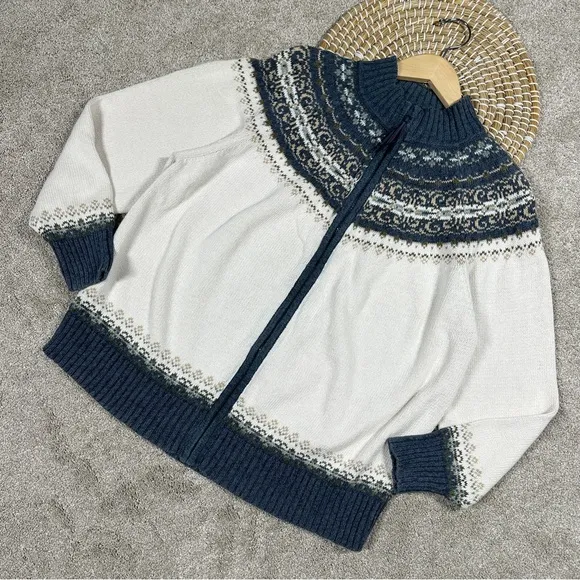 Tiara Cardigan Sweater Full Zip Mock Neck Fair Isle Nordic Ski Blue Tan White 1X - $27 - From Elmee