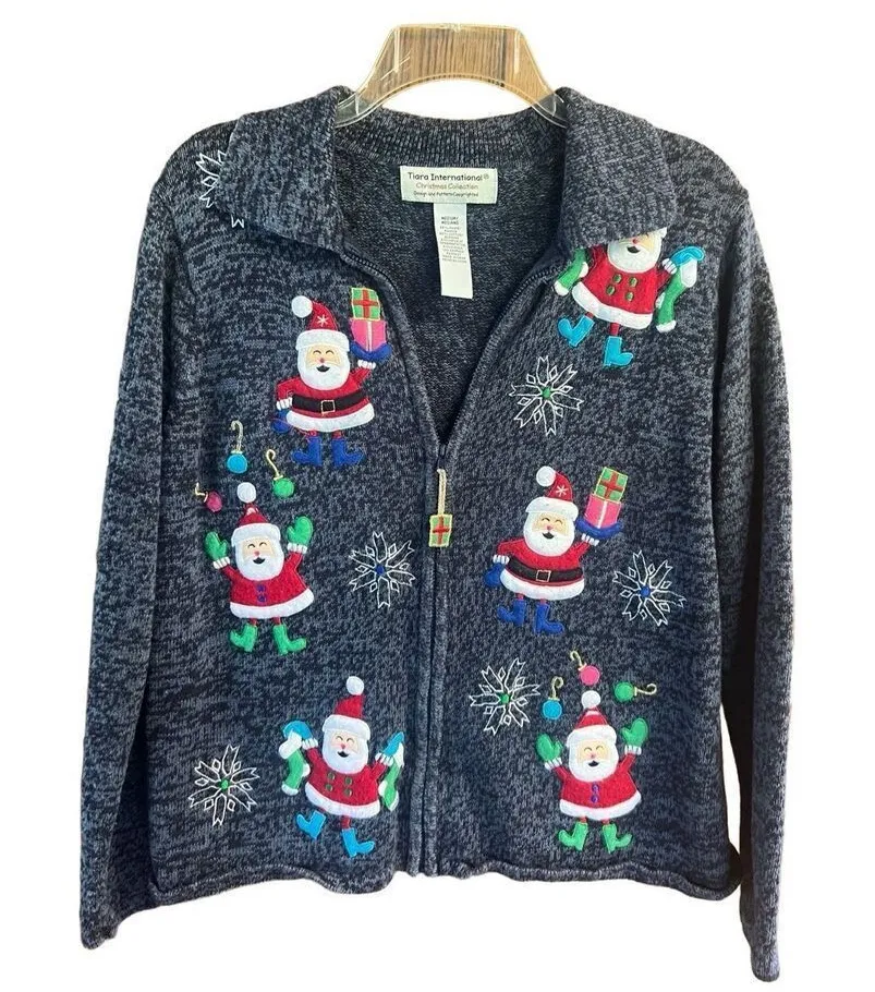 Tiara International Christmas Zipper Cardigan Sz M Gray Size M - $10 - From Dawn
