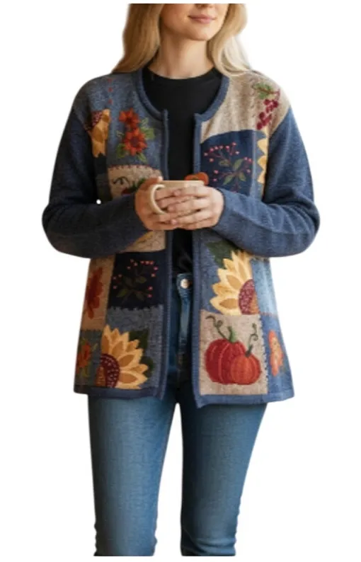 Size medium - color blue - relaxed oversized fit - front embroidery and patchwork details - full zipper closure - 55% ramie , 45% cotton Approx measurements laid flat - pit to pit 20.5 - length shoulder to hem 25" Excellent condition - no rips or flaws