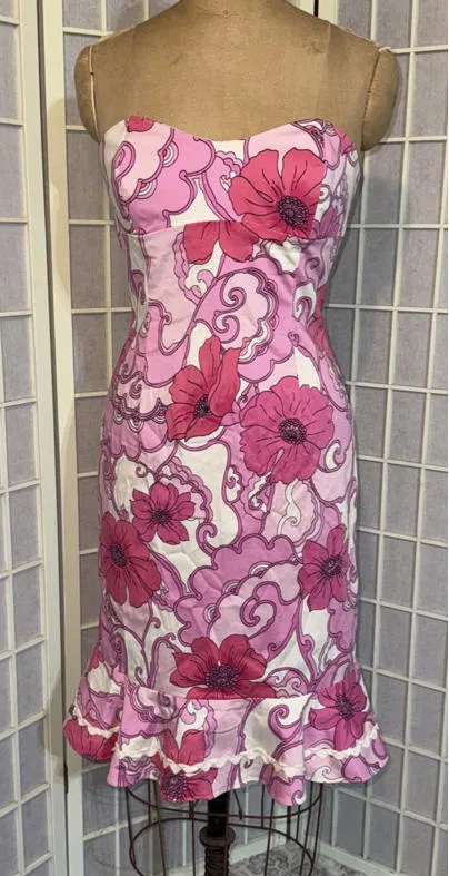 Tibi VINTAGE Preppy Pink Y2K Halter Abstract Floral Sleeveless Mini Dress in USA Women's Size 4 in v... Show more