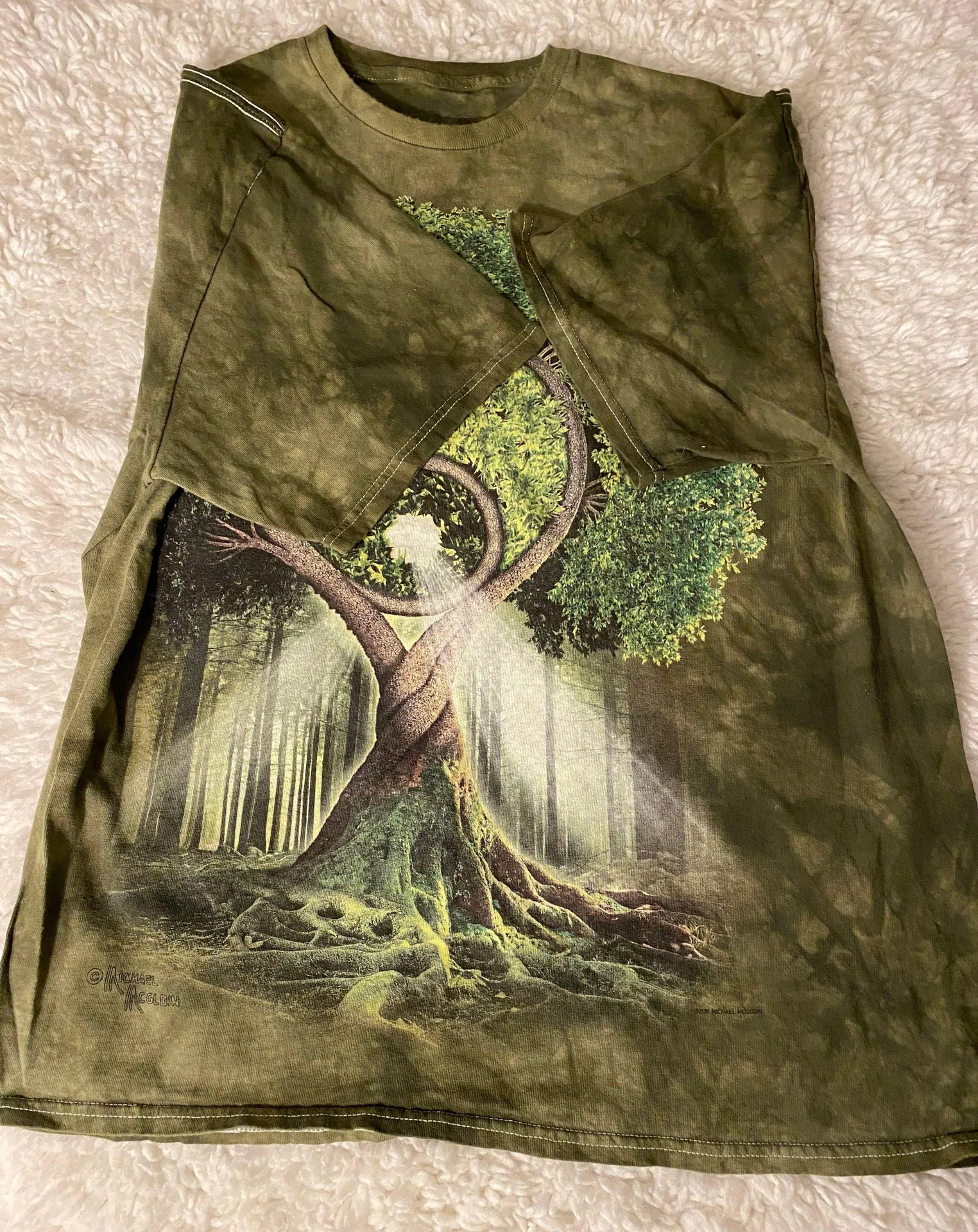 Tie-dye green peace sign/tree of life design graphic tee; beautiful condition; size XL; would look super cute paired with white biker shorts for an oversized comfy fit; would look great overtop a turtleneck for a layered look.
