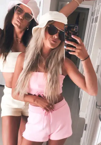 Pink stretch set from white fox. Size XS shorts and Small top. Small staining on the top shown in ph... Show more