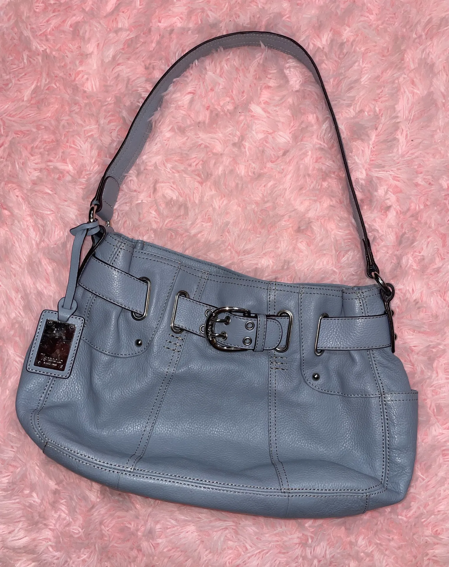 Designer brand Tignanello genuine real blue leather purse with silver buckle and extra pocket - $115 - From Jencrochet