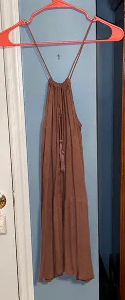 Brand is raviya Purchased from Tillys Color is carmel Perfect for vacations and the summer!