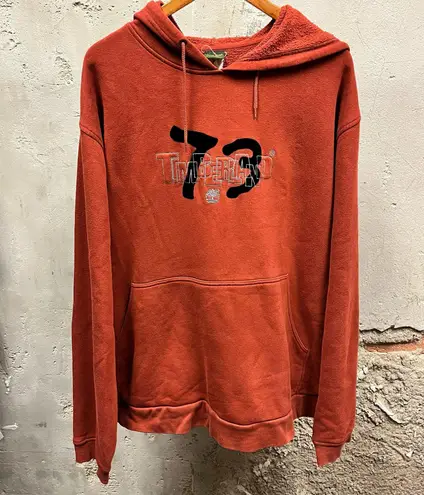 Timberland 73 Vintage Y2K Burnt Orange Red Fleece Hoodie Sweatshirt Embroidered Size XXL - $50 - From Aged