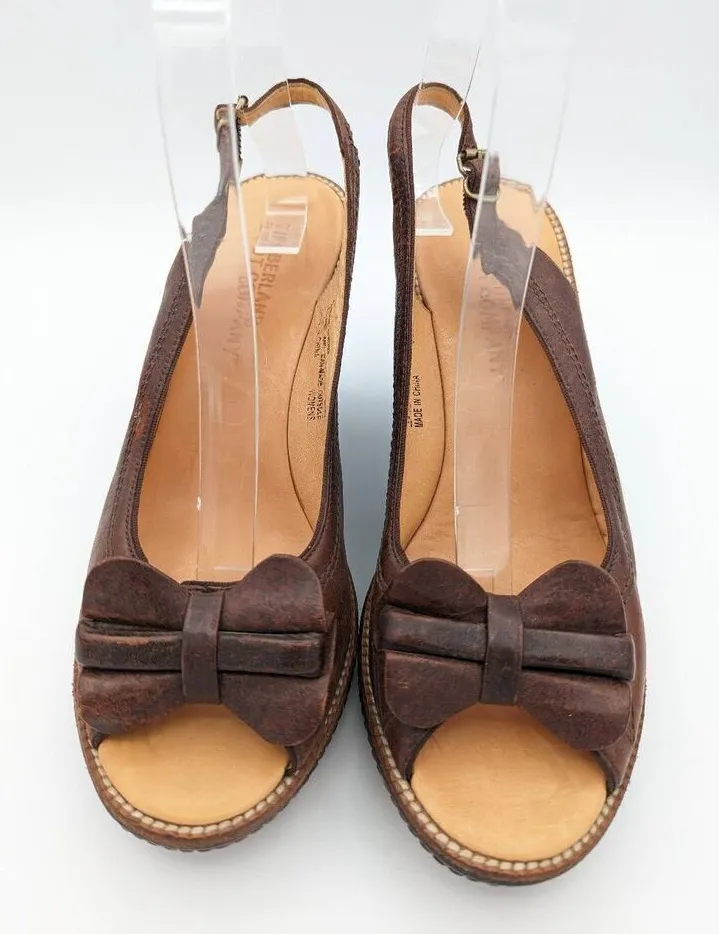 Like new. Upper leather & lining. Wedges, now detail, peep toe, adjustable slingback strap.