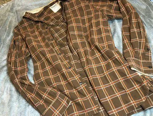 Timberland flannel size large brown orange and white