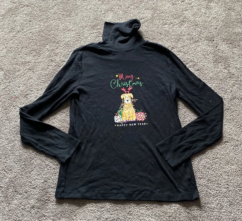 Time & Tru Black Merry Christmas & Happy New Year Turtleneck Top SIZE M Size M - $13 - From My