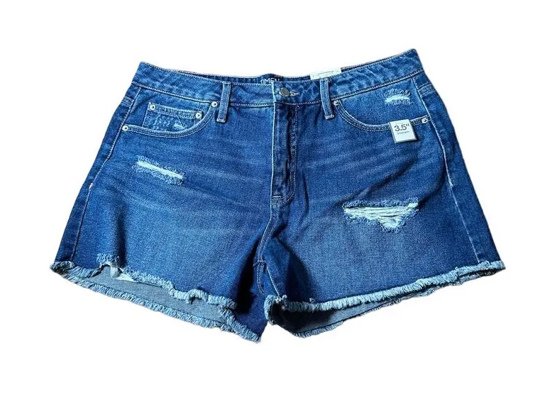 Elevate your summer style with these Time and Tru high rise denim shorts. Featuring trendy distressed details and a frayed hem, they're perfect for casual outings or beach days. The 3.5" inseam offers just the right coverage, while the high-rise fit flatters your curves. Pair with a crop top for a festival-ready look or a breezy blouse for a chic brunch ensemble. Style: Cut-Off Color: Blue Department: Women Fabric Type: Denim Material: 100% Cotton Occasion: Casual Pattern: Solid Accents: Frayed, Distressed Performance/Activity: Beach Fit: Regular Front Type: Flat Front Keywords: denim shorts, high rise, distressed, frayed hem, summer, casual, women's fashion, Time and Tru, 3.5 inch inseam, blue jeans, trendy
