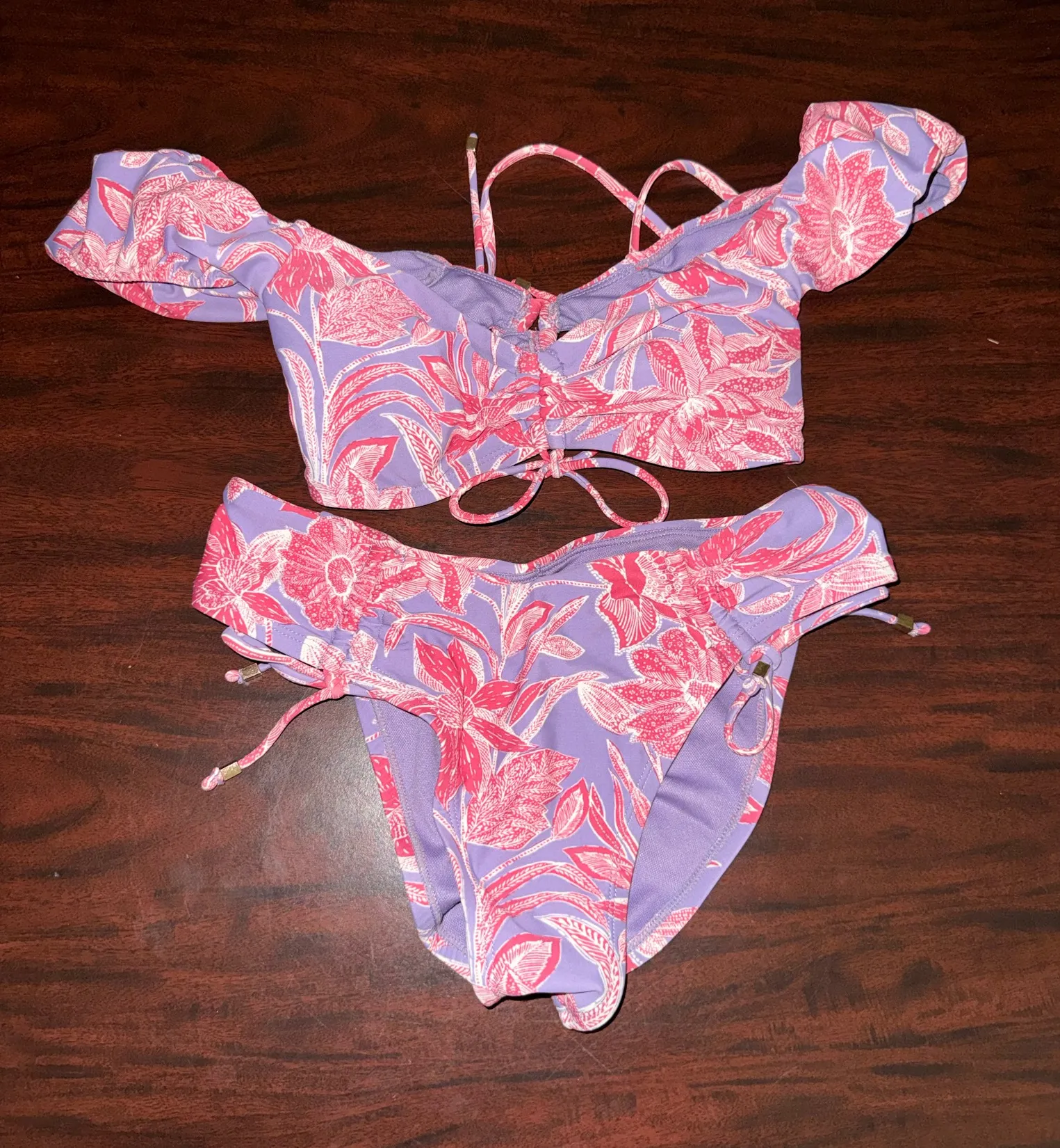 Time and Tru Floral Off The Shoulder Top and Ruched Bottom Size Small Purple - $16 - From Hailey