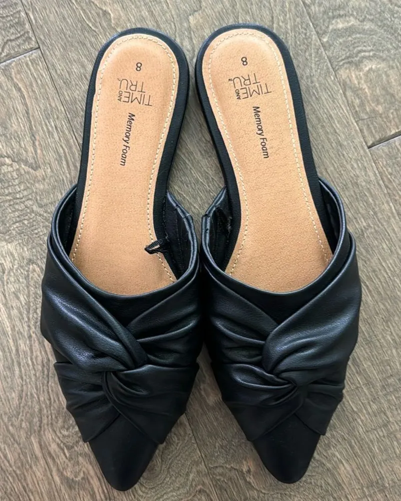 Time and Tru Women's Slip on Woven Twist Black Dress Mules Flats Size 8 - $15 - From Jona