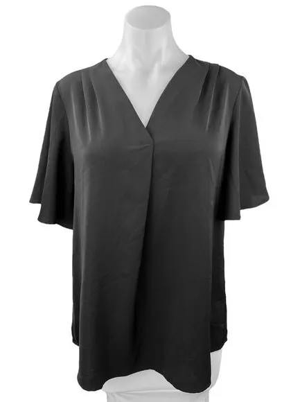 Timeson Black Chiffon V-Neck Flutter Sleeve Career Work Business Blouse Top Sz L Size L - $23 - From Brie