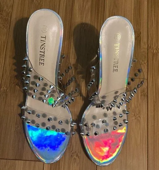 Tinstree Women’s Size 10 Clear Chunky Block Heel Open Toe Studded Sandals NWT - $36 New With Tags - From N