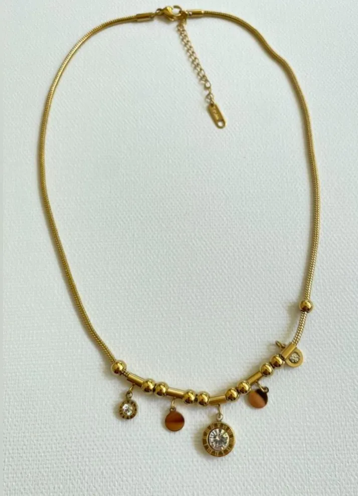 Titanium Non-Tarnish Gold Tone Roman Numerals Necklace /Clear Crystals 15.5” - $15 - From Moon