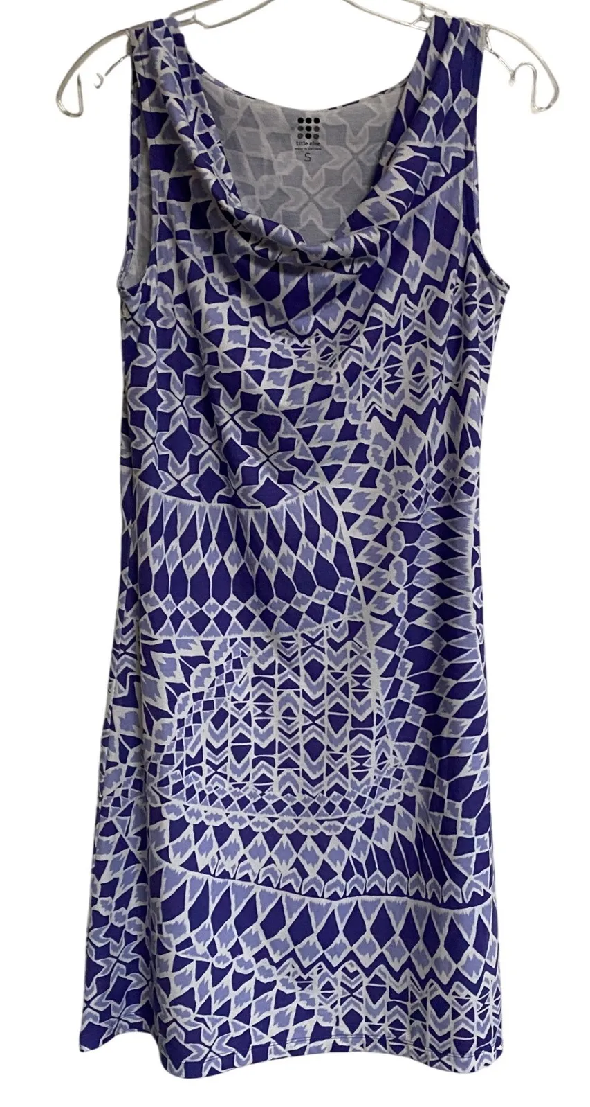 Rhythmic artistry defines this striking dress, where geometric patterns dance across the fabric, creating a visually captivating effect. This sleeveless design with a unique cowl neckline offers a comfortable and flattering fit, perfect for warm weather. The vibrant purple and white palette adds a touch of sophistication and playfulness. Feel effortlessly chic wearing it to a weekend brunch, a casual garden party, or even a relaxed vacation getaway. size S - EUC, no flaws Has hidden inside pocket near bottom hem Style: Tank Dress, Sundress Dress Length: Knee Length Department: Women Sleeve Length: Sleeveless Pattern: Geometric Occasion: Casual, Travel Material: Rayon Blend, Rayon, Spandex Neckline: Cowl Neck Fabric Type: Rayon Season: Summer, Spring Sleeve Type: Cap Sleeve Closure: Pullover Keywords: Title Nine, dress, sleeveless, geometric print, purple, white, casual dress, cowl neck, womens dress, summer dress, size small, rayon blend dress Open to offers! Fast shipping Smoke free home