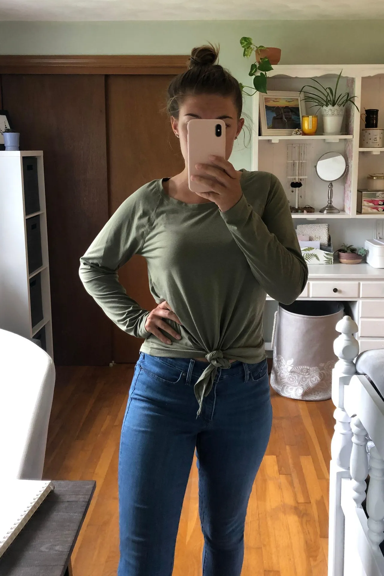 Light olive green workout top with tie waist detail . Size M from TJ Maxx