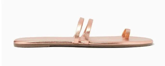 Elevate your style with these TKEES Leah rose gold leather slide sandals. Perfect for casual outings... Show more
