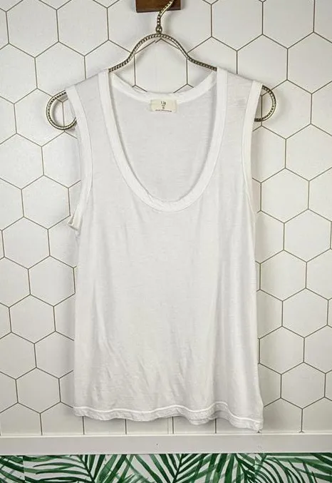 P2P: Approximately 17.5 inches Length: Approximately 25 inches Size: Small Petite Condition: Lightly worn with no visible signs of wear or damage. Classic white sleeveless tank top suitable for casual wear. Soft and lightweight fabric for comfortable all-day wear. Versatile basic piece that can be layered or worn alone. Simple scoop neckline and clean hem finish.