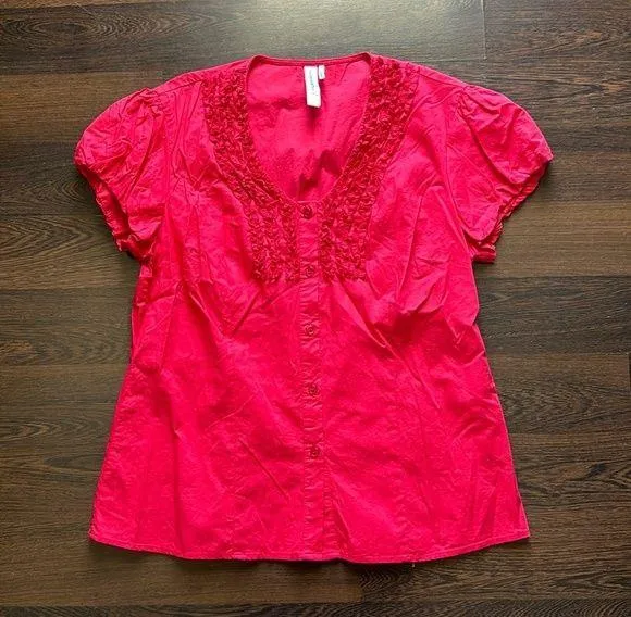 Hester & Orchard Button Down Tuxedo Ruffle Top Red Large - $33 - From Samantha