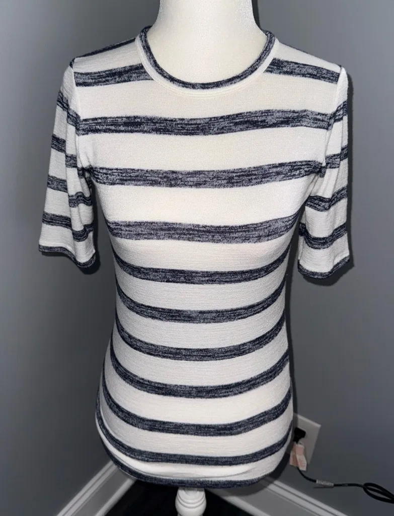 Rag and Bone women's knit white short sleeve shirt size XS the Knit Tee in White and Navy Excellent... Show more