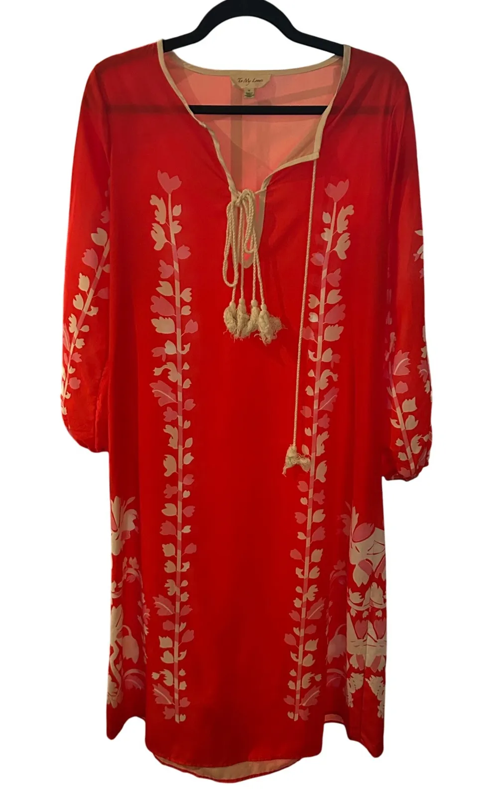Condition is very good with two flaws/callouts: 1- towards very bottom of front of dress two small scratch/pulls that are not noticeable unless up close. 2- missing top tie tassel on right side-options are to replace or remove the left tassel which would be fine and easier. Nobody will ever know? Ptp = 20.5" Arm length = 23" Length = 45" A vibrant red dress featuring a delicate floral print, perfect for adding a pop of color to your wardrobe. This long-sleeve dress is designed with a flattering V-neckline and charming tassel ties, offering a touch of bohemian flair. The lightweight fabric ensures comfort, while the eye-catching floral pattern adds a feminine touch. Ideal for a casual brunch, a garden party, or a relaxed evening out, this dress combines style and ease effortlessly. Style: Shift Dress Length: Knee Length Color: Red Department: Women Sleeve Length: Long Sleeve Pattern: Floral Occasion: Casual, Party/Cocktail, Travel Material: Polyester Neckline: V-Neck Fabric Type: Chiffon Character: Bohemian, Free Spirit, Flower Child, Romantic, Elegant Season: Spring, Summer Keywords: red dress, floral dress, tassel tie dress, long sleeve dress, bohemian dress, boho chic, casual dress, women's dress, size small, floral print, v-neck dress, spring dress, summer dress