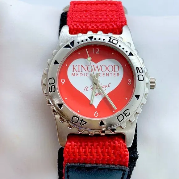 Tomax kingwood medical center “it’s about time “ watch 35mm silver tone red blac - $15 - From Watch