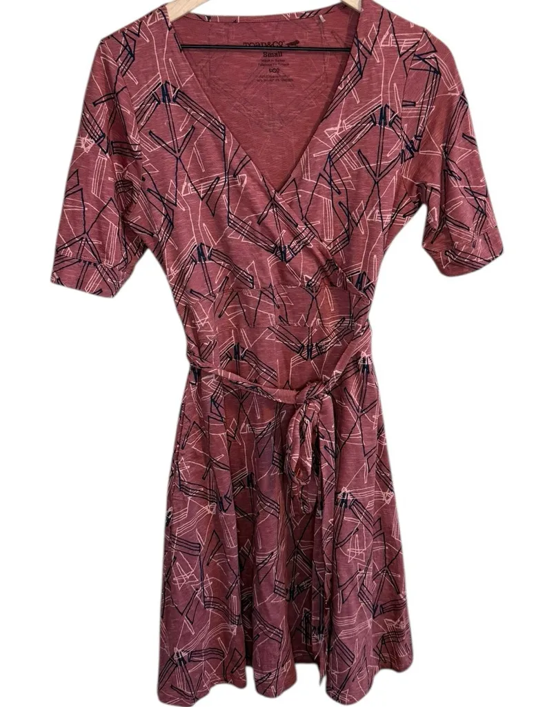 Toad&Co Women's Sz Small Cue Wrap Short Sleeve Dress in the "Redwood Yard Sale" Red - $43 - From Megan