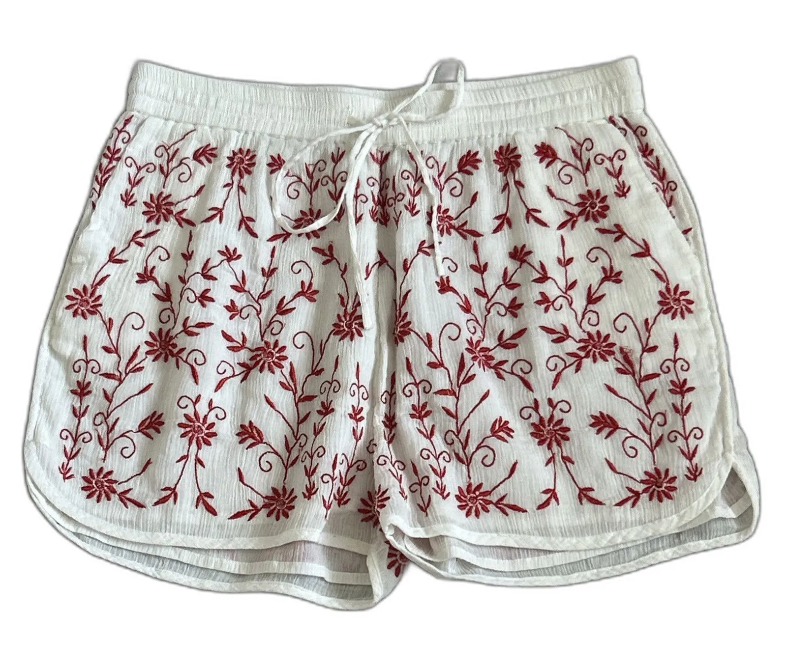 Tolani Shorts Women Medium Embroidered Lined Pockets Floral Asian Stretch Cotton White - $15 - From kelli
