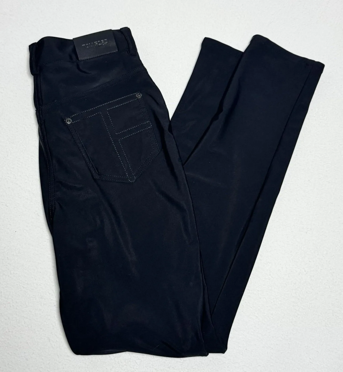Tom Ford Black Women's Glossy Trousers Pants Size 40 Made In Italy Office/business wear. Nice stretchy material, good condition. Please see pictures for details and measurements.