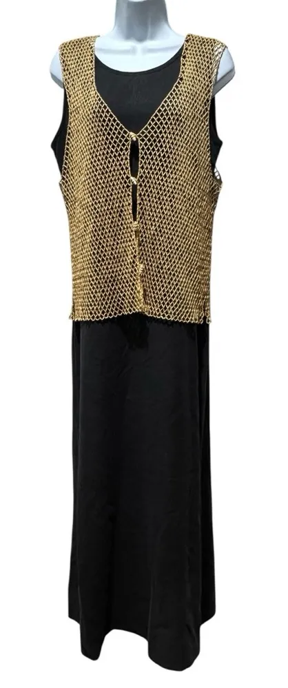 Elevate your vacation wardrobe with this Tommy Bahama black silk maxi dress paired with a stunning w... Show more