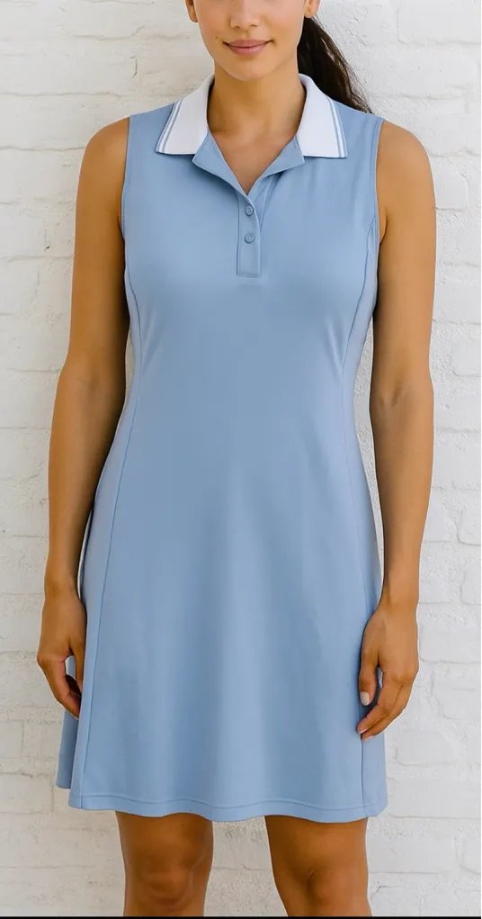 In excellent condition! Size medium. Tommy Bahama Light Blue Polo Dress White Collar Racquet Paddl... Show more