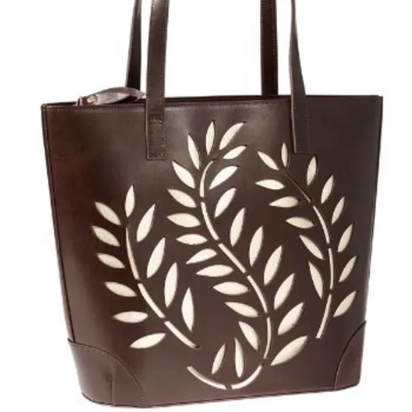 New with tags. North South Palms Cage tote from Tommy Bahama. Brown and golld metallic leather. Subs... Show more