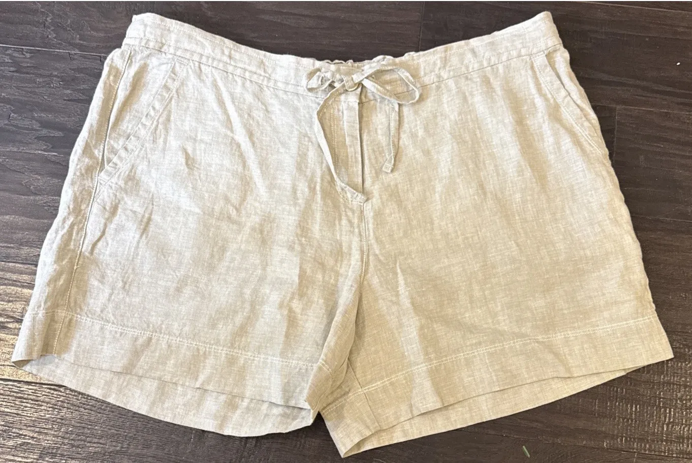 Tommy Bahama Womens XL Tan Linen Shorts Drawstring Elastic Waist Pockets Beach - $25 - From Andrea