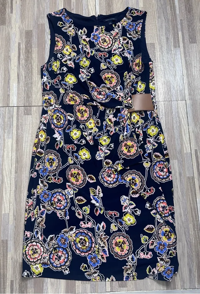 Embrace elegance with this sleeveless floral dress. Featuring a vibrant multicolor pattern on a navy... Show more