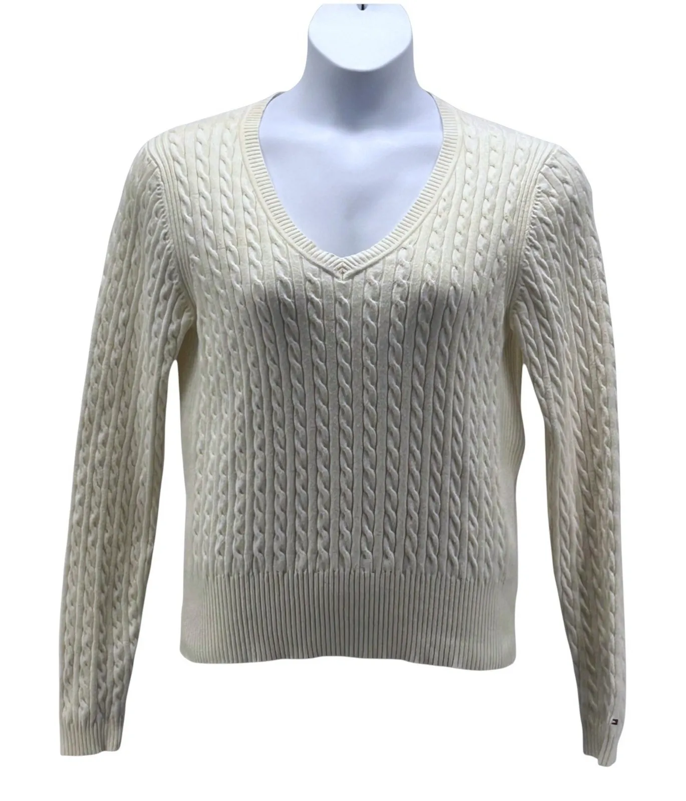 Embrace timeless elegance with this exquisite Tommy Hilfiger cream cable knit sweater. The intricate... Show more