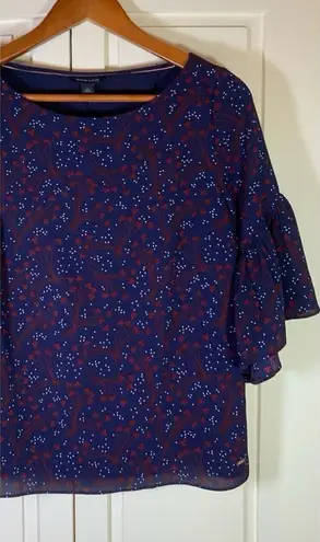 Tommy Hilfiger Cottage Blouse Top Women's Small Sheer Lined Bell Sleeve Office